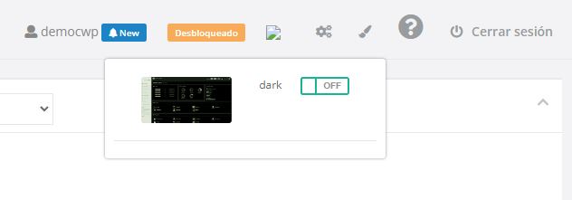 Para cambiar el tema al modo oscuro, haga clic en el ícono del pincel en la esquina superior derecha y gire el selector a ON para activarlo.