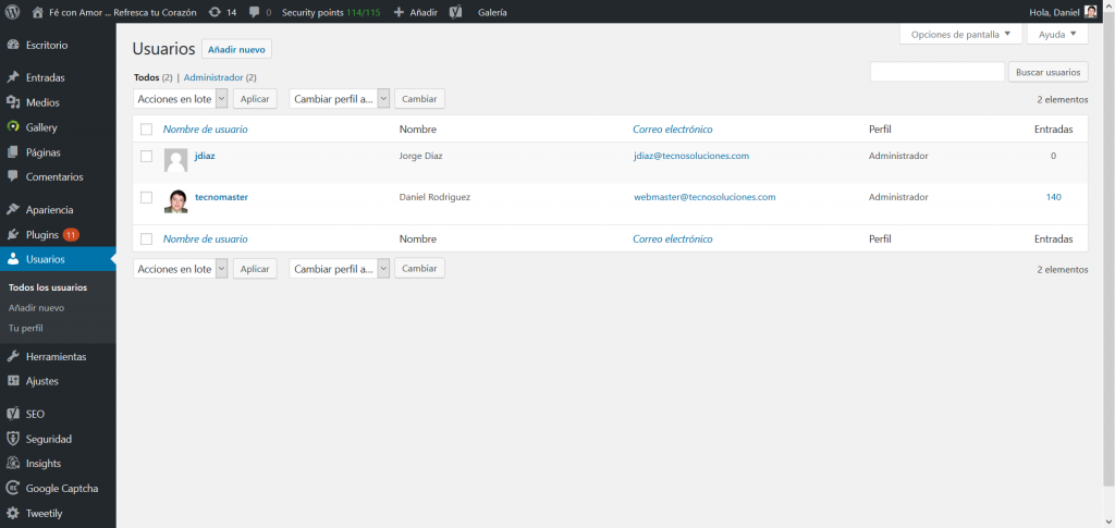 En esta opción podremos Añadir – Editar – Borrar usuarios, así como también asignar distintos perfiles.