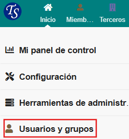 Para crear, modificar y/o eliminar Usuarios es necesario ingresar en Inicio (menú Superior) a Usuarios y grupos (menú Izquierdo).