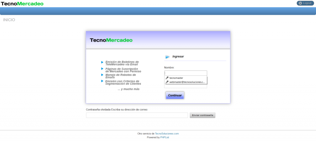 Al inicio de su contratación de este servicio en línea se le informó sobre cómo utilizar su navegador de Internet para encontrar la dirección correcta de TecnoMercadeo. Iniciando TecnoMercadeo, usted encontrará la página de ingreso que es el punto principal de entrada al sistema TecnoMercadeo, y la mayoría de los usuarios necesitaran identificarse para tener acceso al sistema.