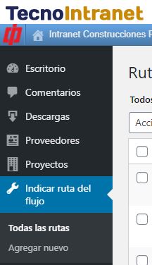 Para acceder al módulo de Indicar ruta del flujo, vamos al menú lateral izquierdo y buscamos la opción que lleva por nombre Indicar ruta del flujo.