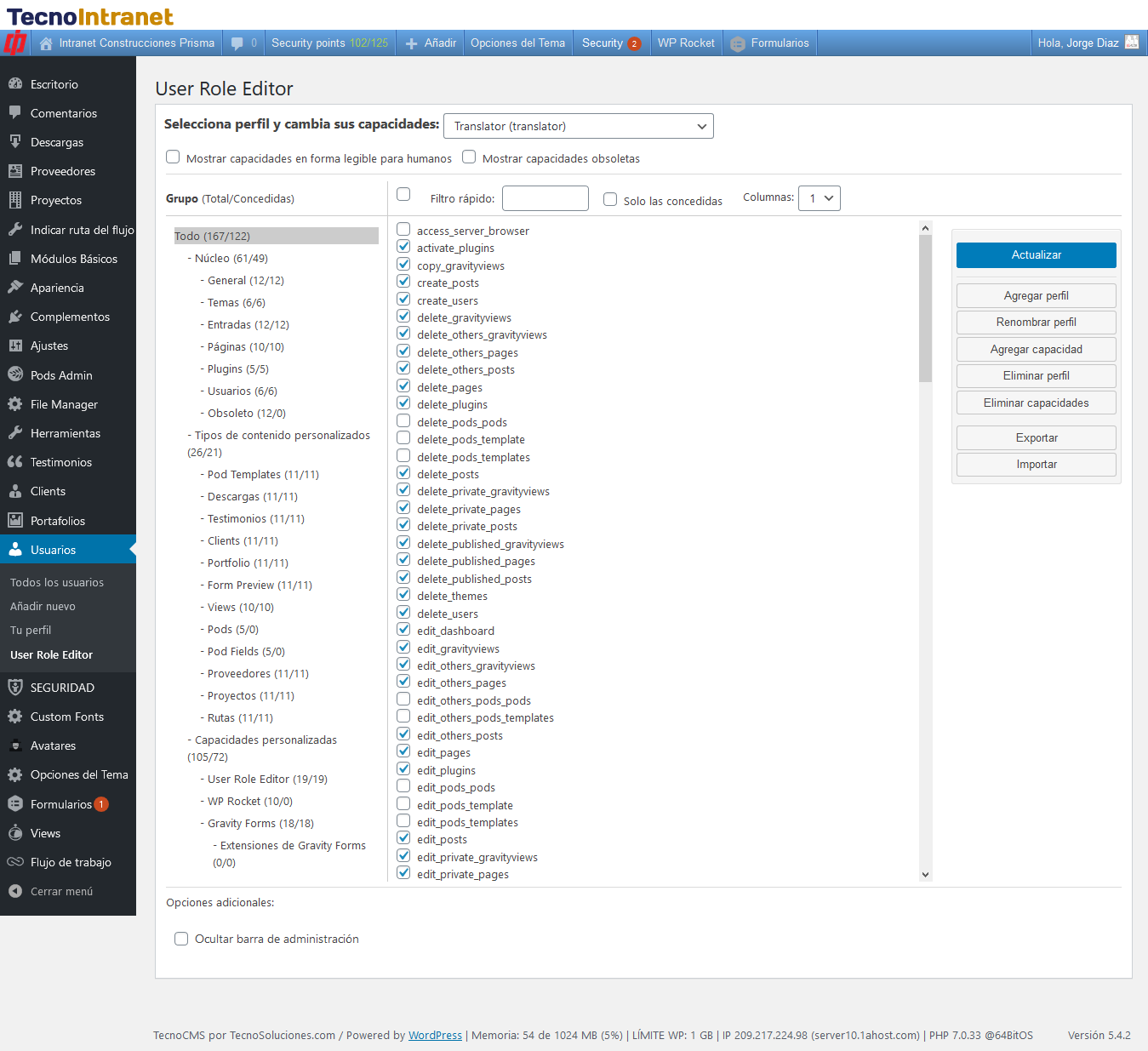 Este módulo nos permite poder crear, modificar, renombrar o eliminar, los roles de usuarios dentro de nuestra plataforma.