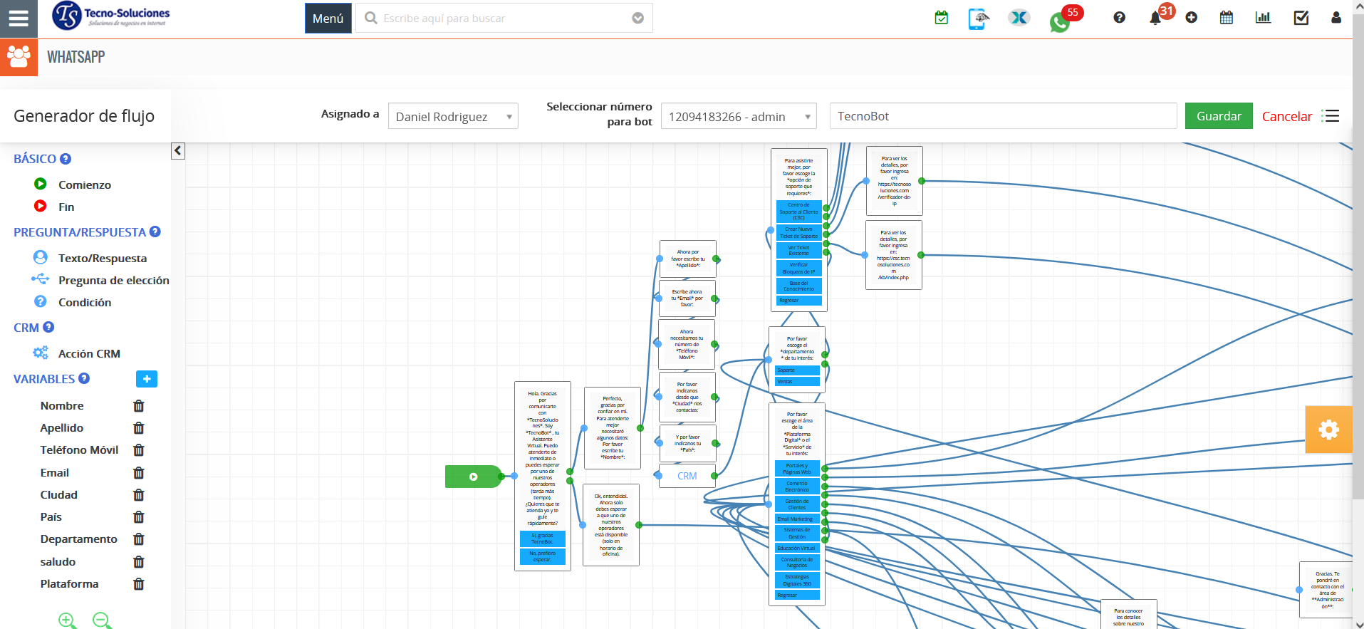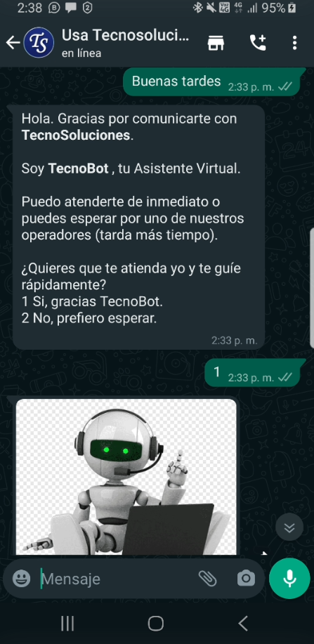 - Seleccione la opción “Si, gracias TecnoBot” como su flujo establecido para eso: