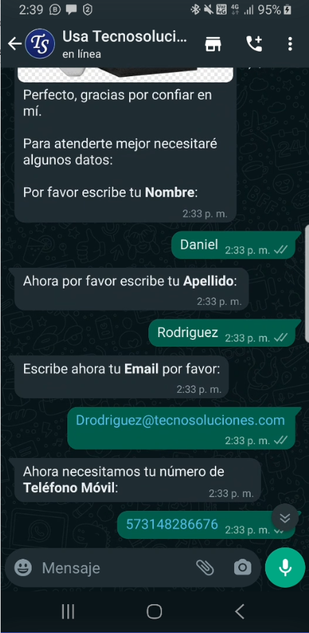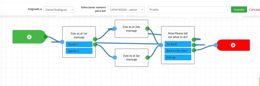 - O Si ingresa un valor diferente a “10000” de acuerdo con la condición establecida como “Número igual a 10000”, la condición será falsa, por lo que responderá al mensaje como “Ok, gracias”. Nuestro Equipo de Ventas se comunicará con usted pronto…”