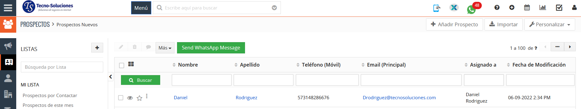 - Ingrese el nombre, el correo electrónico y el número de teléfono, que crearán el contacto de acuerdo con los detalles que ingresó como su acción de TecnoCRM establecida en el flujo: