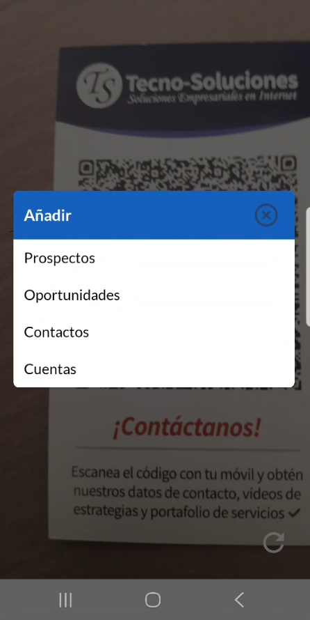- Seleccione el tipo de contacto al escanear el código QR.