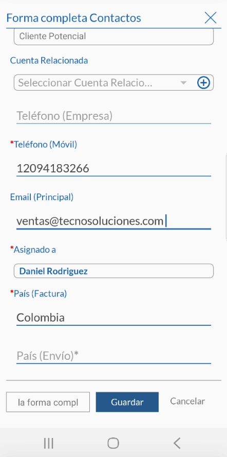 - Guarde el registro como clientes potenciales, oportunidades, contactos, organizaciones o proveedores.