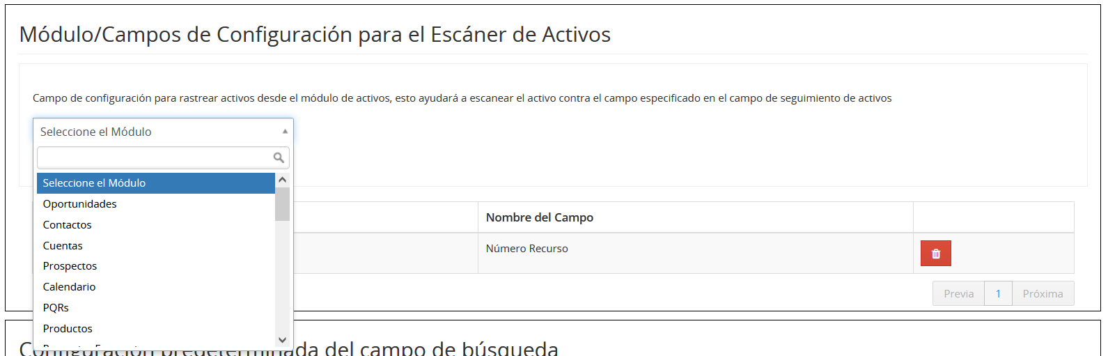 - Vaya a Otras configuraciones > Configuración de CRM > TecnoCRM Mobile Apps – Configuración de campos > Configuración de campo de código de barras.