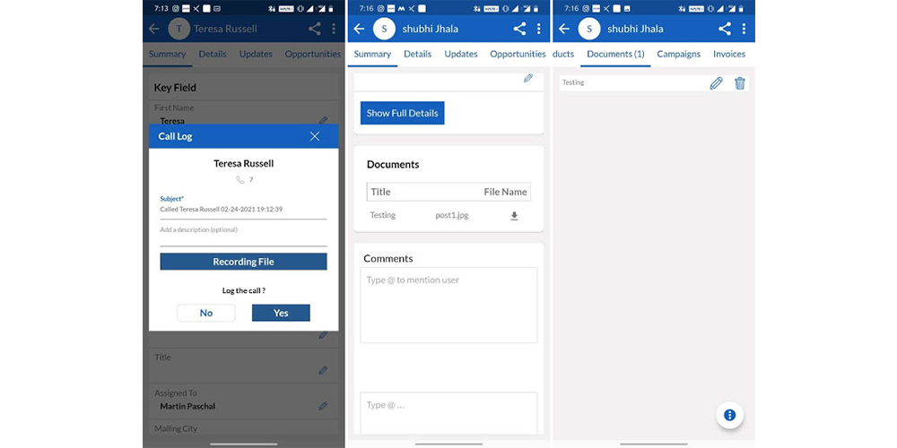 - Vaya a cualquier registro, llame a un registro individual, inicie la grabadora de teléfono del dispositivo si está disponible en el dispositivo del usuario.