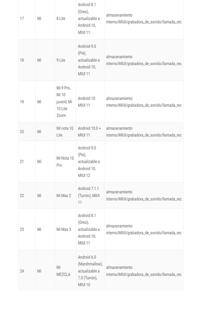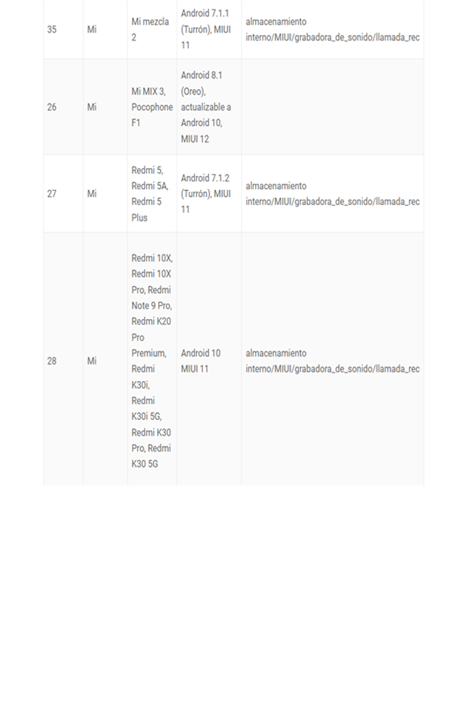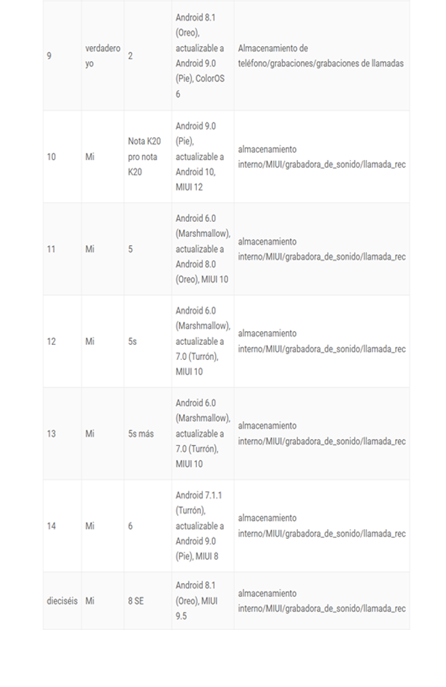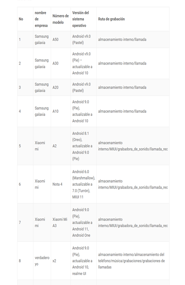 A continuación se muestra la lista de la función de registro y grabación de llamadas de la oferta telefónica: (Puede haber otro dispositivo compatible con el registro/grabación de llamadas, la lista anterior es solo para fines informativos).