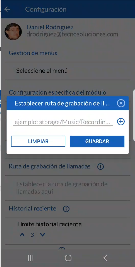 Los usuarios de la aplicación pueden configurar la ruta de almacenamiento del registro de llamadas para guardar audio cada vez que completan la llamada.