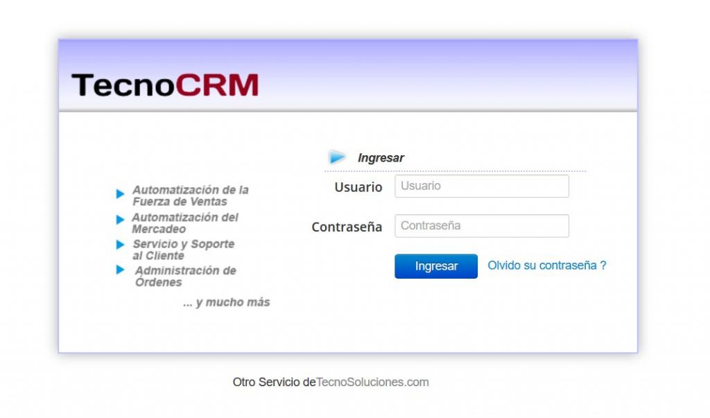 El navegador permite grabar sus datos de acceso para que no sean solicitados constantemente cuando ingresa por primera vez, sin embargo, no es recomendado grabar esta información en el PC debido a que si un tercero tiene acceso al mismo también podría ingresar al sistema TecnoCRM.