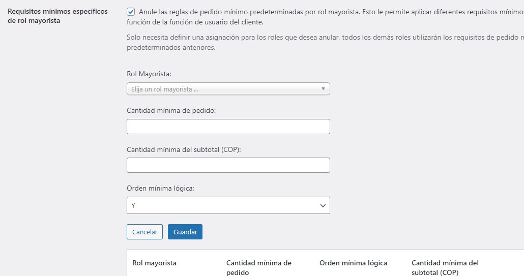 Cuando está habilitado, el rol de cliente mayorista asignado aquí obtendrá el nuevo requisito de pedido mínimo para ellos como lo establece en esta anulación.