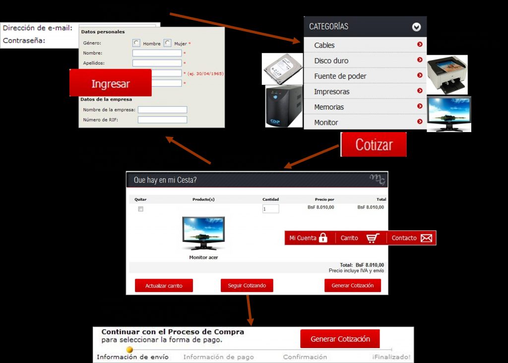 El proceso de compra o Solicitud de Cotización a través del Portal TecnoCommerce es muy sencillo y amigable. Este consiste en: