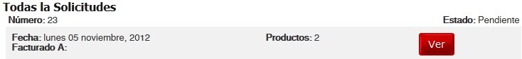 Siguiendo con la imagen inicial, al hacer clic en “ver todas mis solicitudes”, se muestra un cuadro con el listado completo de todos los pedidos realizados por el cliente, con la opción de ver los detalles de cada uno. Además, el sistema permite navegar entre varias páginas en caso de que el listado sea muy largo.