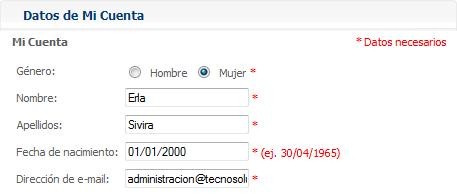 - Mi Cuenta. Permite visualizar y/o modificar los datos del cliente (Usuario Registrado), estos son: