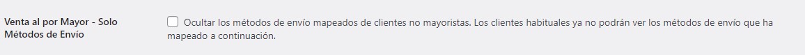 Esto significa que los clientes habituales ya no podrán ver los métodos de envío que ha asignado, haciéndolos exclusivamente para uso de clientes mayoristas.