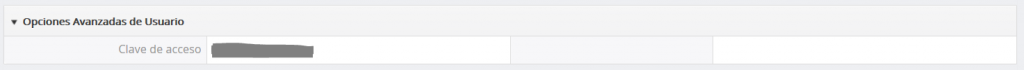 Clave de Acceso (API): Es la clave necesaria para que se puedan hacer conexiones remotas a la plataforma a través de las funciones avanzadas de la API (Web Services) normalmente no utilizado por los usuarios estándar.