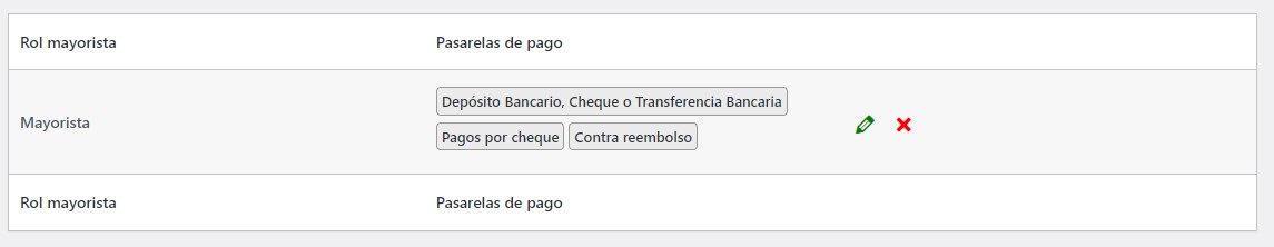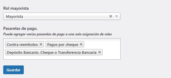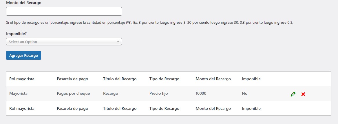 - Utilizar el recargo general de la pasarela de pago de roles mayoristas