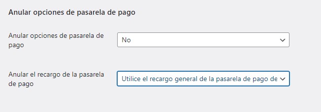 Allí encontrará el campo Anular recargo de pasarela de pago y tiene tres opciones que puede seleccionar: