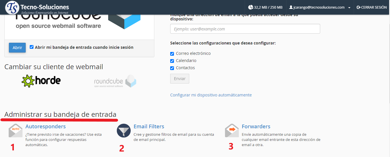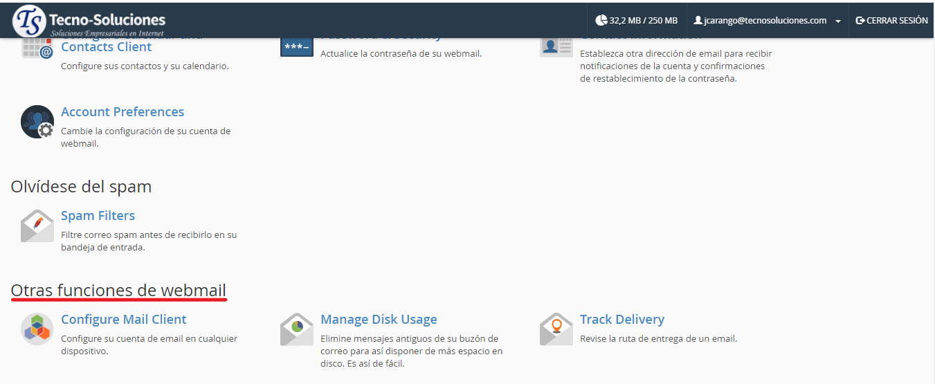 Otras funciones de Webmail