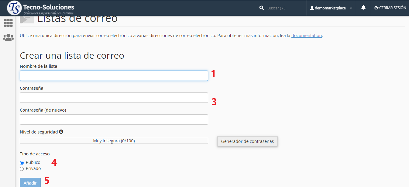 Para agregar una nueva lista de correo, realice los siguientes pasos: