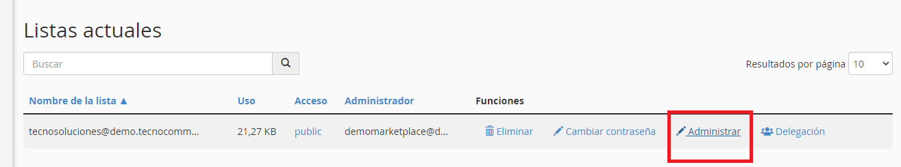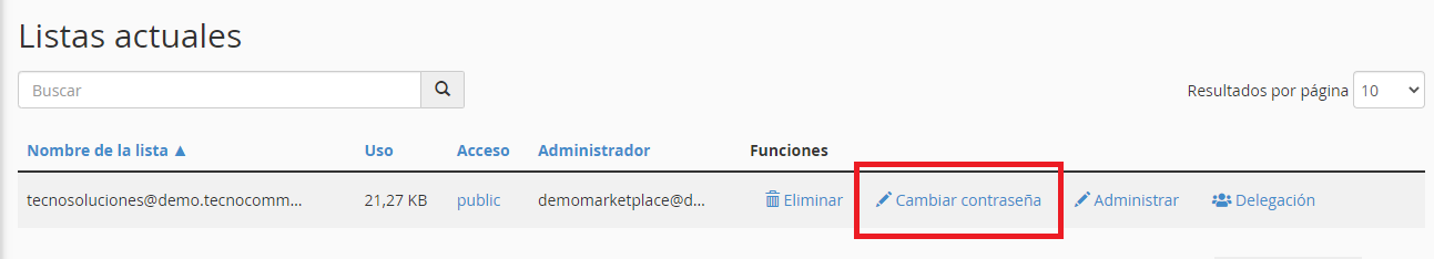 Para cambiar la contraseña de una lista de correo, realice los siguientes pasos: