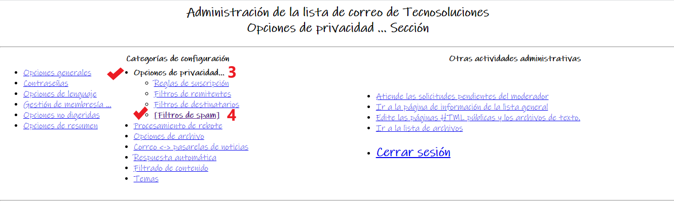 Para habilitar los filtros de correo no deseado para una lista de correo, realice los siguientes pasos: