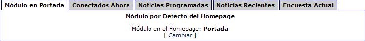 - Módulo Portada: Permite cambiar el módulo que se abrirá como Inicio del Panel de Administración.
