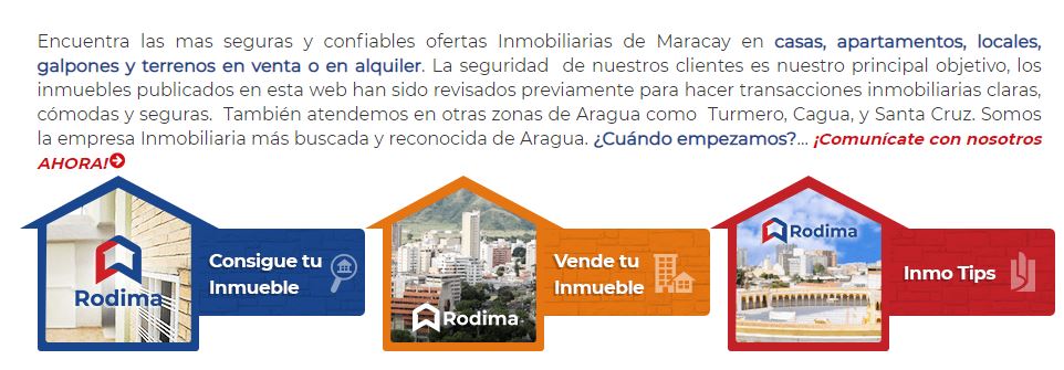 Seguido a esto, econtraremos una breve descripción de la inmobiliaria, con algunos de los servicios de la misma. Esta información puede presentarse en dos formas dependiendo de la maquetaciónb de preferencia del cliente.