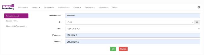 Para activar el enlace TAG en ipdiscover, pase IPDISCOVER_LINK_TAG_NETWORK en encender en la página de configuración y cierre la sesión/inicie sesión. Ahora, vaya Redes > Administrar > Administrar subred ahí cree una nueva subred con el parámetro TAG.