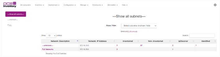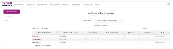 Vuelva a Inventario > IpDiscover. Las subredes están agrupadas por dirección IP y TAG