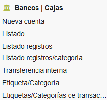 - Etiqueta/Categoría: permite crear, modificar y/o eliminar categorías para las cuentas bancarias.