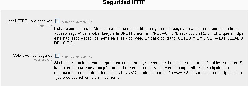 Ubicación: Administración> Seguridad> Seguridad HTTP