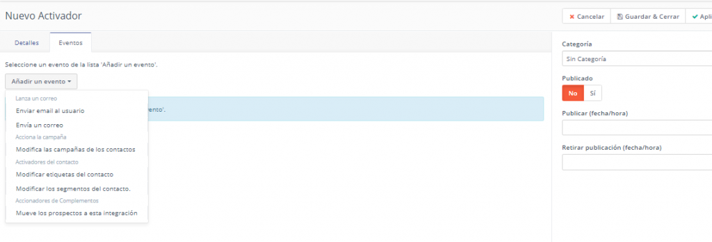 Los activadores de puntos son eventos que se activan en función del total de puntos alcanzado de un contacto. En términos simples, cuando un contacto alcanza un número mínimo de puntos, el activador del puntaje se dispara y se realiza una acción.