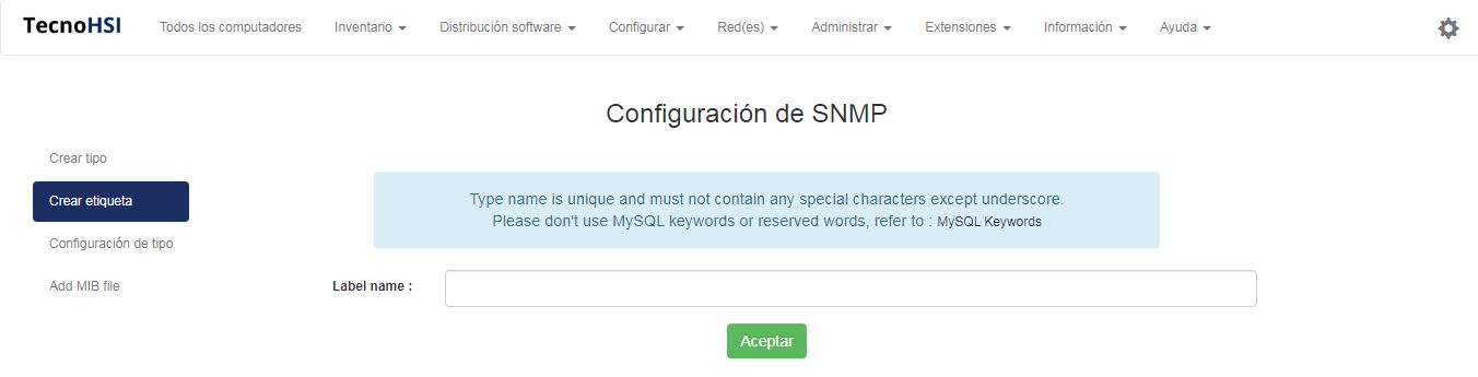Nota: El nombre de la etiqueta debe ser único y no debe contener ningún carácter especial excepto un guión bajo. No utilice palabras clave de MySQL o palabras reservadas. Vea Palabras clave de MySQL