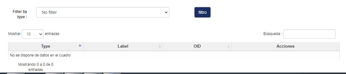 Si desea mostrar solo una configuración de tipo, seleccione el tipo que desee con el campo de selección Filtrar por tipo y haga clic en Filtro.