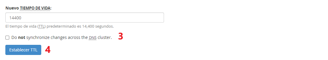 Nota: Este valor debe ser un número entero positivo. El TTL predeterminado es 14,400 segundos.