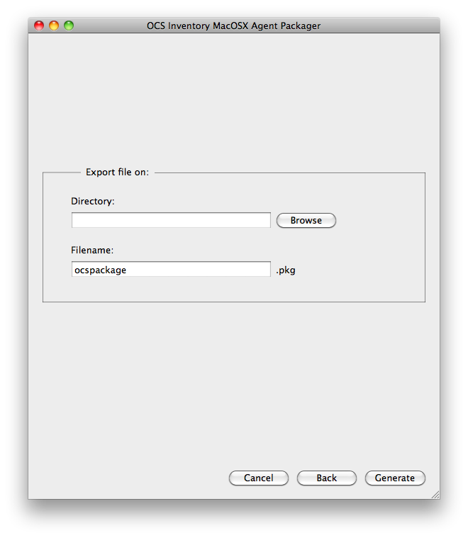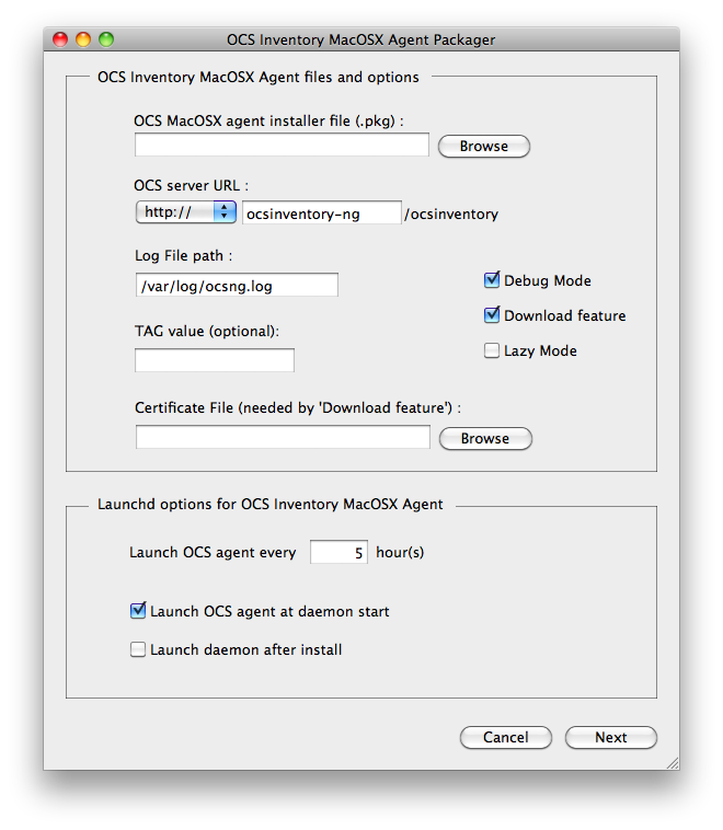 Advertencia: para poder utilizar OCS MacOSX Packager para MacOSX, debe descargar un agente OCS MacOSX archivo de instalación de la página de descarga del sitio web de OCS Inventory NG (OCS download page).