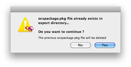 Si no establece una ruta para el paquete de instalación OCS MacOSX, aparecerá esta advertencia:
