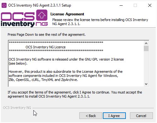 Inicie el archivo OCS-NG-Windows-Agent-Setup.exe. Se abre una ventana. Haga clic en el botón Siguiente.
