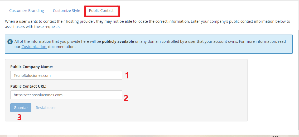 Los revendedores que poseen sus cuentas pueden agregar información personalizada a sus dominios principales.