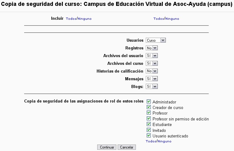 Ubicación: Administración> Portadas> Copia de seguridad del curso