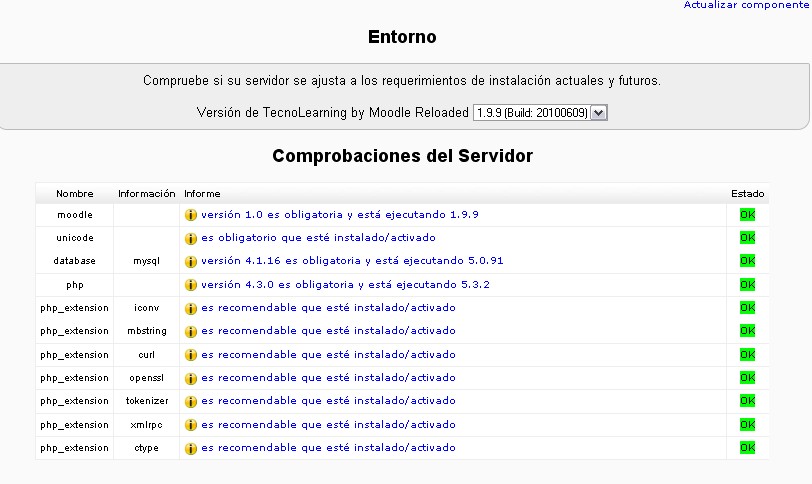Estas especificaciones permiten a los administradores comparar sus servidores con los requerimientos mínimos para hospedar una versión particular de TecnoLearning.