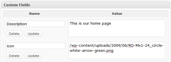 Para que cada página disponga de su propio ícono y descripción, utilizaremos campos personalizados.