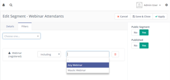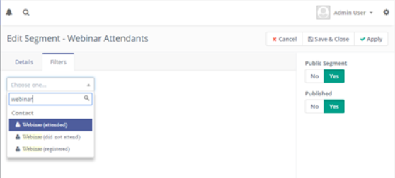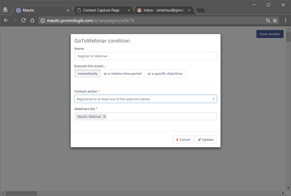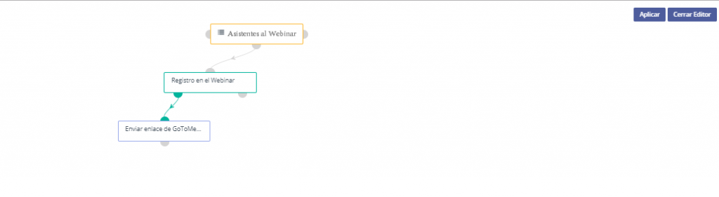 14) Este es un ejemplo de una campaña que envía un enlace a una reunión preliminar después de que se identifica que un contacto tiene registrado en un webinar (usando segmento)