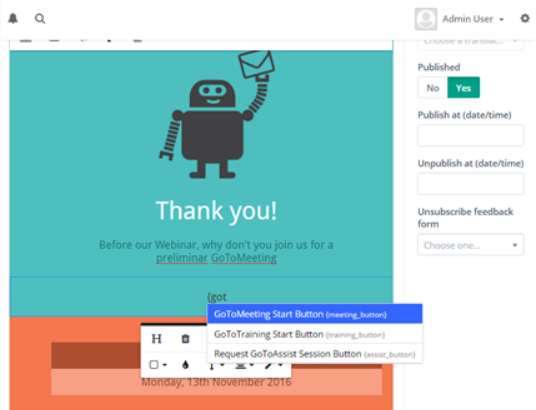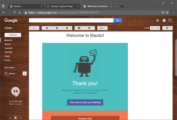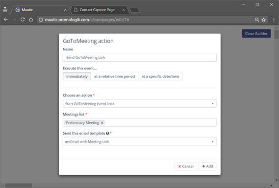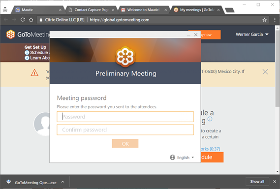 - Cuando el contacto hace clic en el enlace, redirige a GoToMeeting para iniciar la reunión