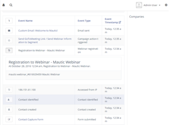 - Los nuevos eventos aparecen en la línea de tiempo del contacto