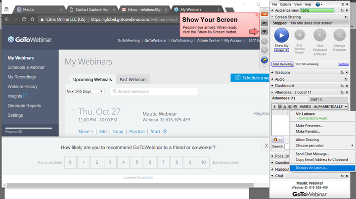 - Este es un ejemplo de un seminario digital donde asistió el contacto