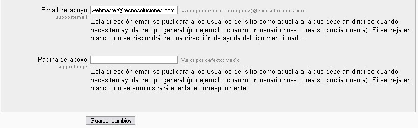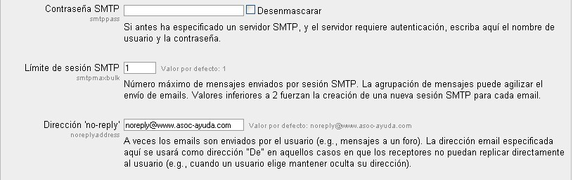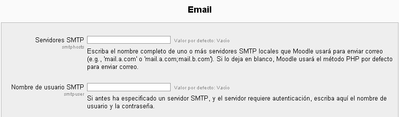 Ubicación: Administración> Servidor> Email